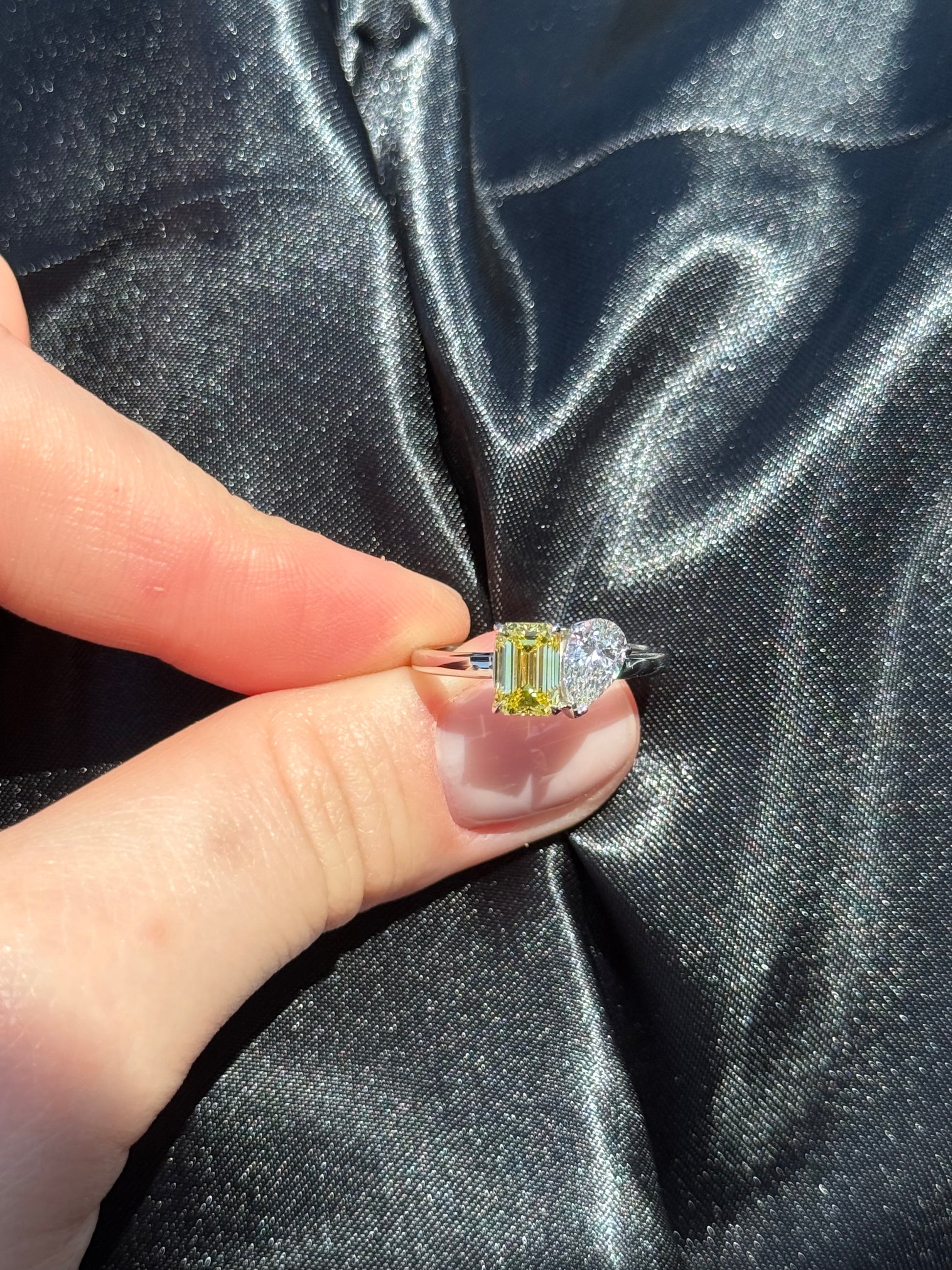 Elegant LAB Two-Stone Ring Fancy Yellow 1.59 ct
