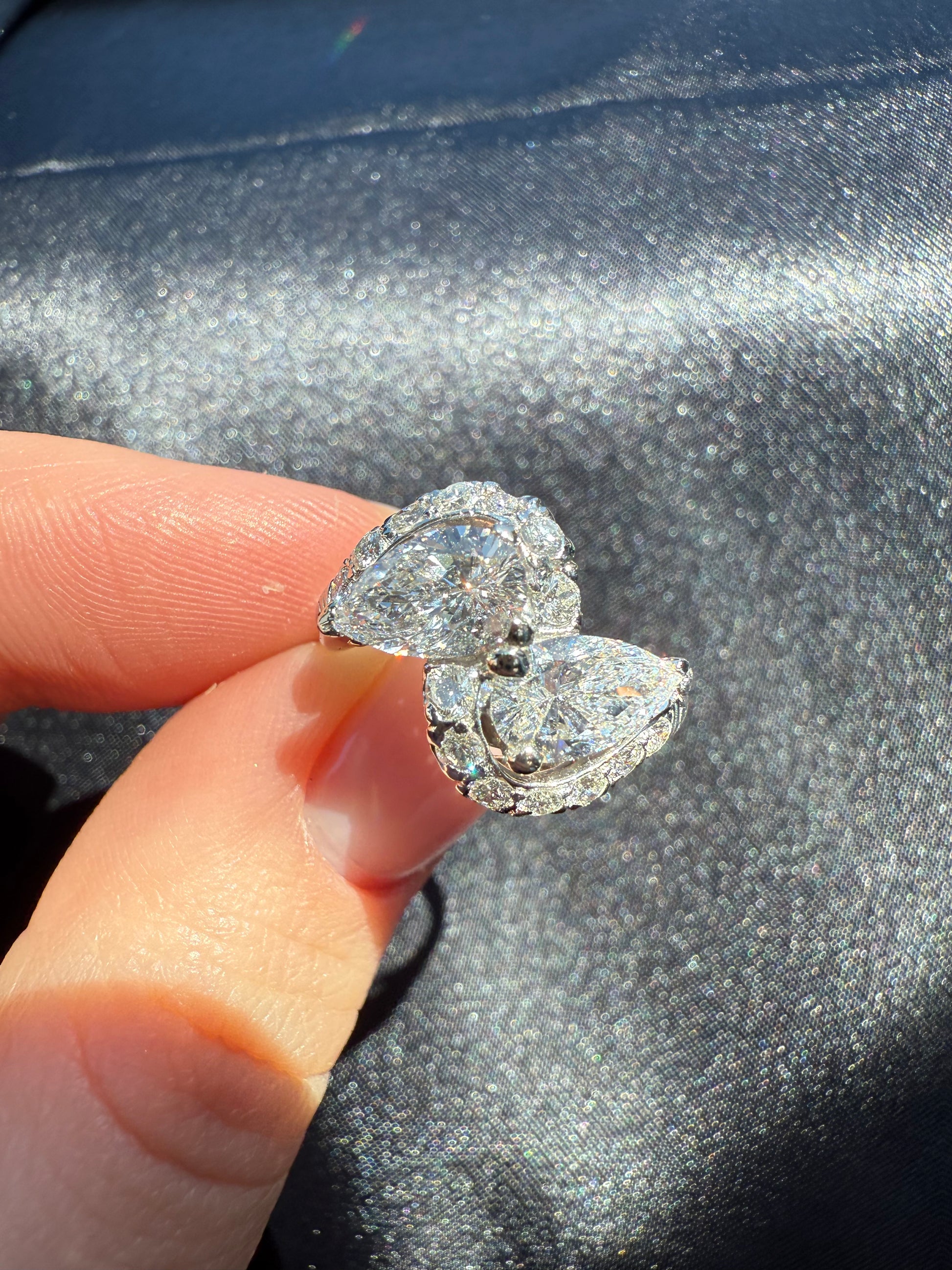 Diamond description: Weight: Pear shapes: 1.40ctw. Round: 0.40ctw Color: E-F. Clarity: VS1. Setting: Platinum . Weight: 2.10g. Size: 4.5